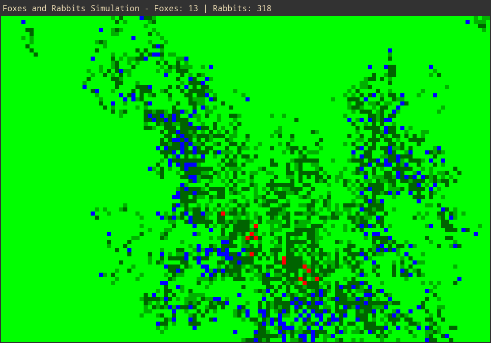 A concurrent implementation of the classic predator-prey model simulating population dynamics between foxes and rabbits using Go powerful concurrency features.