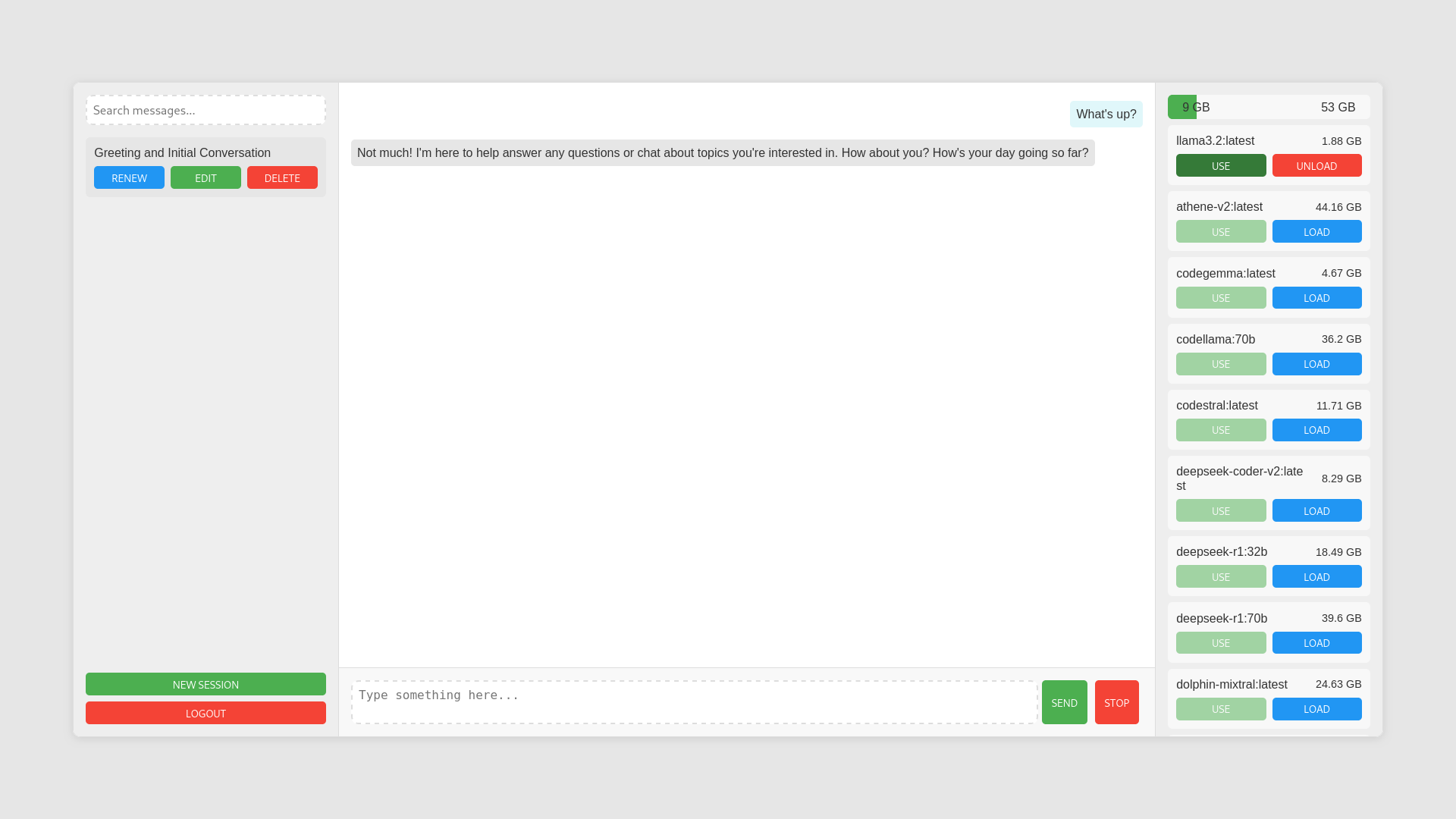 A full-featured web app for interacting with self-hosted Ollama AI models. Includes conversation management, model switching, and memory monitoring.