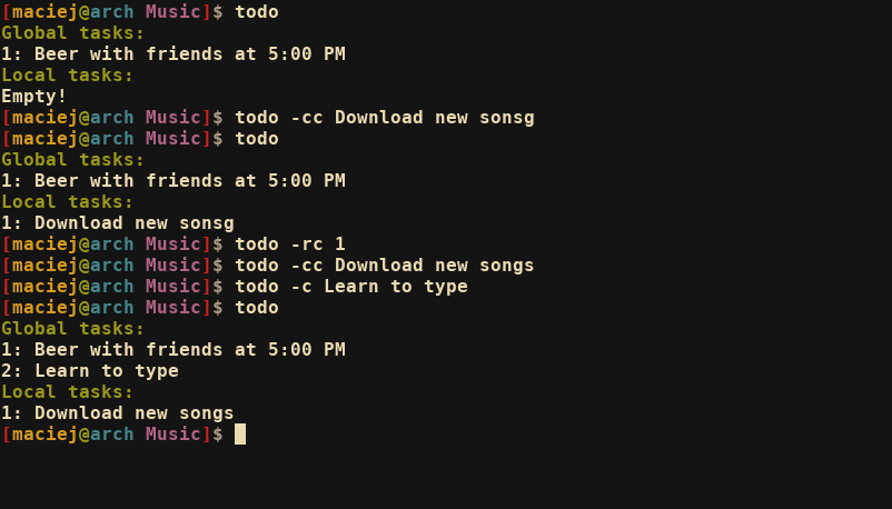 A lightweight, terminal-based ToDo list manager written in C for Linux. Organize tasks by folder or globally, designed for everyday productivity.